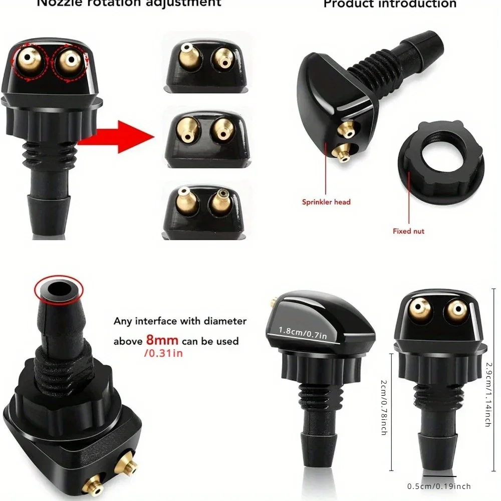 These nozzles help improve visibility by ensuring proper spray coverage for your wipers, effectively removing dirt, dust, and debris. Built from durable materials, they are designed for long-lasting performance and resistance to wear.